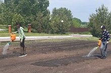 Мәктәп яны участогында эшләгәндә куркынычсызлык техникасы буенча инструктаж алгач, хезмәт һәм ял лагерендә тәрбияләнүчеләр хезмәт десантына участокка юл алдылар, аннан соң отряд почмагын рәсмиләштерергә керештеләр.