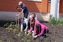 Ә хезмәт һәм ял лагере балалары тәрбиячеләр белән мәктәп яны участогында кәбестә һәм помидор утырттылар.