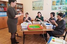 В ходе заседания учитель-дефектолог 3 коррекционного класса Емельянова Е.П. продемонстрировала занятие на тему «Путешествие в песочную страну».