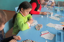 Учащиеся 1-4 классов совместно с учителем изобразительного искусства Сайфутдиновой Г.А. продолжают готовить подарки своими руками любимым мамам. Очень непростую задачу поставила учитель, для выполнения работы потребуется много времени. Поэтому ребята пришли на консультацию в дни осенних каникул. Очень хочется увидеть результат работы....на лице мам)))