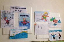 Учащиеся начальных классов оформили выставку рисунков на тему "Буду бдительным на льду"