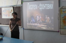 Библиотекарь Сайфутдинова Г.А. провела библиотечный урок "Писатели фронтовики", приуроченный к 70- летию Великой Победы.