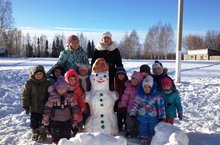 В чудесный зимний день воспитанники группы дошкольного образования вместе с воспитателями сделали снежные фигуры.
