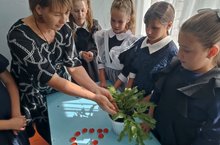 Учитель начальных классов Альфия Маннановна провела для учащихся информационный час "России реют флаги".