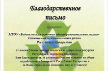 Стали известны результаты акции по сбору батареек. И наша школа в числе лидеров по району, за что награждена благодарственным письмом Министерства экологии. Это заслуга воспитателя дошкольной группы Идрисовой Гульназ Рафиковны и родителей. Молодцы.