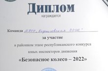 Наши ученицы Сайфутдинова Сабина и Закирова Самина приняли участие в муниципальном этапе соревнований "Безопасное колесо". Они показали свои знания и умения в теоретическом и практическом этапах. Молодцы, девочки!