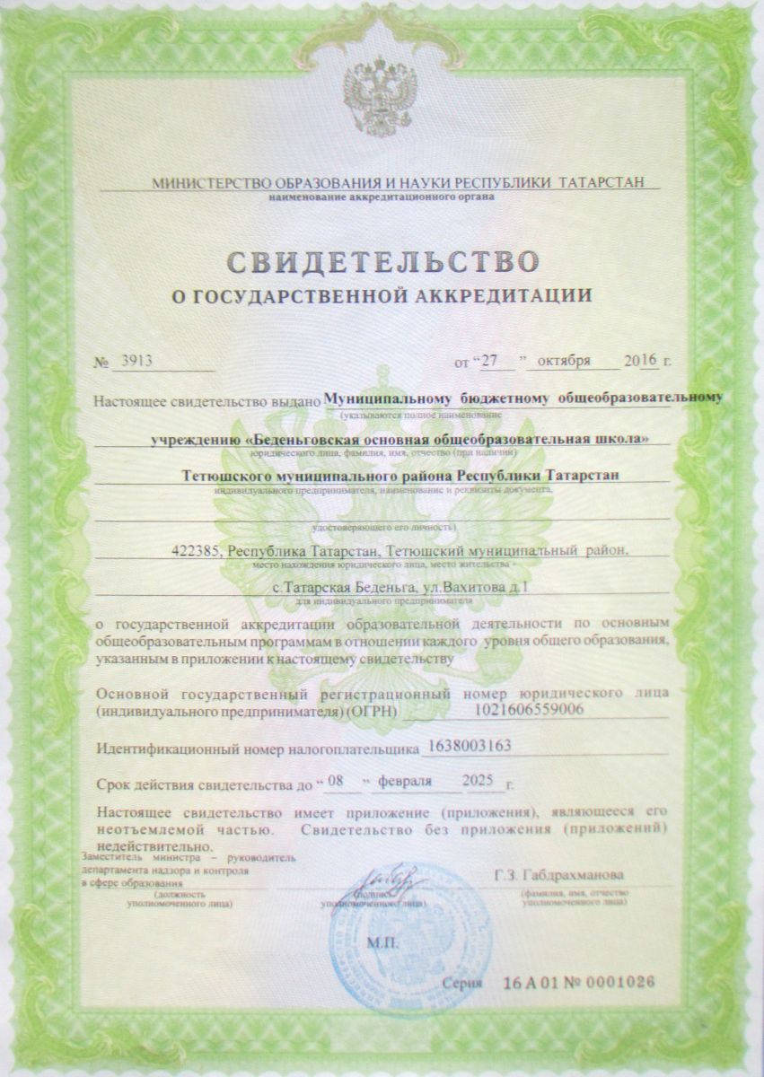 Адрес: 422385, Республика Татарстан, Тетюшский район, с.Татарская Беденьга, ул.Вахитова, д.1