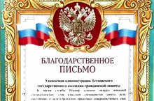 Сегодня в адрес колледжа пришло благодарственное письмо от командования Ильмира.