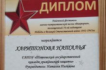 Наталья Харитонова, курсант 302 группы специальности " ЗЧС", удостоена диплома II степени в номинации "вокал-соло". -