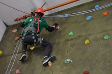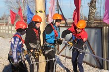 В ходе выполнения задания ребята преодолевают скальный рельеф с верхней судейской страховкой, (свободным лазанием) с