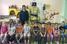 Беседа началась с того, что Регина поинтересовалась, знают ли дети: «Кто такие спасатели? Для чего нужна пожарным одежда, которую мы принесли?»