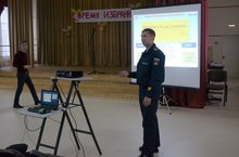 Преподаватель колледжа Елена Ивановна Тимофеева и курсанты 402 группы Шарафиева Регина и Шарафутдинов Айнур познакомили ребят с профессиями спасателя и пожарного.С собой они принесли боевую одежду пожарного и веревки.