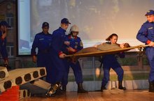 Программа выступления колледжа отличалась не только многообразием музыкальных номеров: интересной была подача номера «АРТ-Проффи», отражающего суть профессиональной деятельности спасателей и пожарных, подготовка которых начата в нашем колледже. «АРТ-Профи» представили курсанты специальностей МЧС, под руководством тренера-преподавателя Мамкина И.Г.