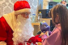 Курсанты колледжа в костюмах Дедушки Мороза и снегурочки поздравили детей с наступающим новым годом и вручили им загаданные подарки.