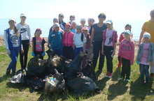 Учащиеся школы убрали мусор на берегу реки Волга.