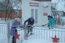 Сегодня учащиеся убрали обелиски в с.Пролей-Каша от снега.