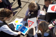 В рамках Глобальной недели безопасности дорожного движения на территории школы провели практическое занятие с учащимися по правилам дорожного движения.