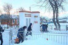 Тимуровцы убрали снег у обелисков.