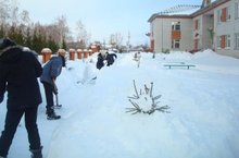 После сильного снегопада учащиеся школы провели операцию "Снег".