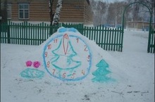 Учащиеся школы сделали снежные фигуры на территории школы.