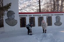 В канун празднования 80-летия Сталинградской битвы тимуровцы школы провели акцию обелиск. Почистили обелиски от снега.