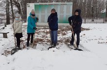 Отряд тимуровцев отчистил от снега обелиск павшим воинам односельчанам в с.Пролей-Каши.