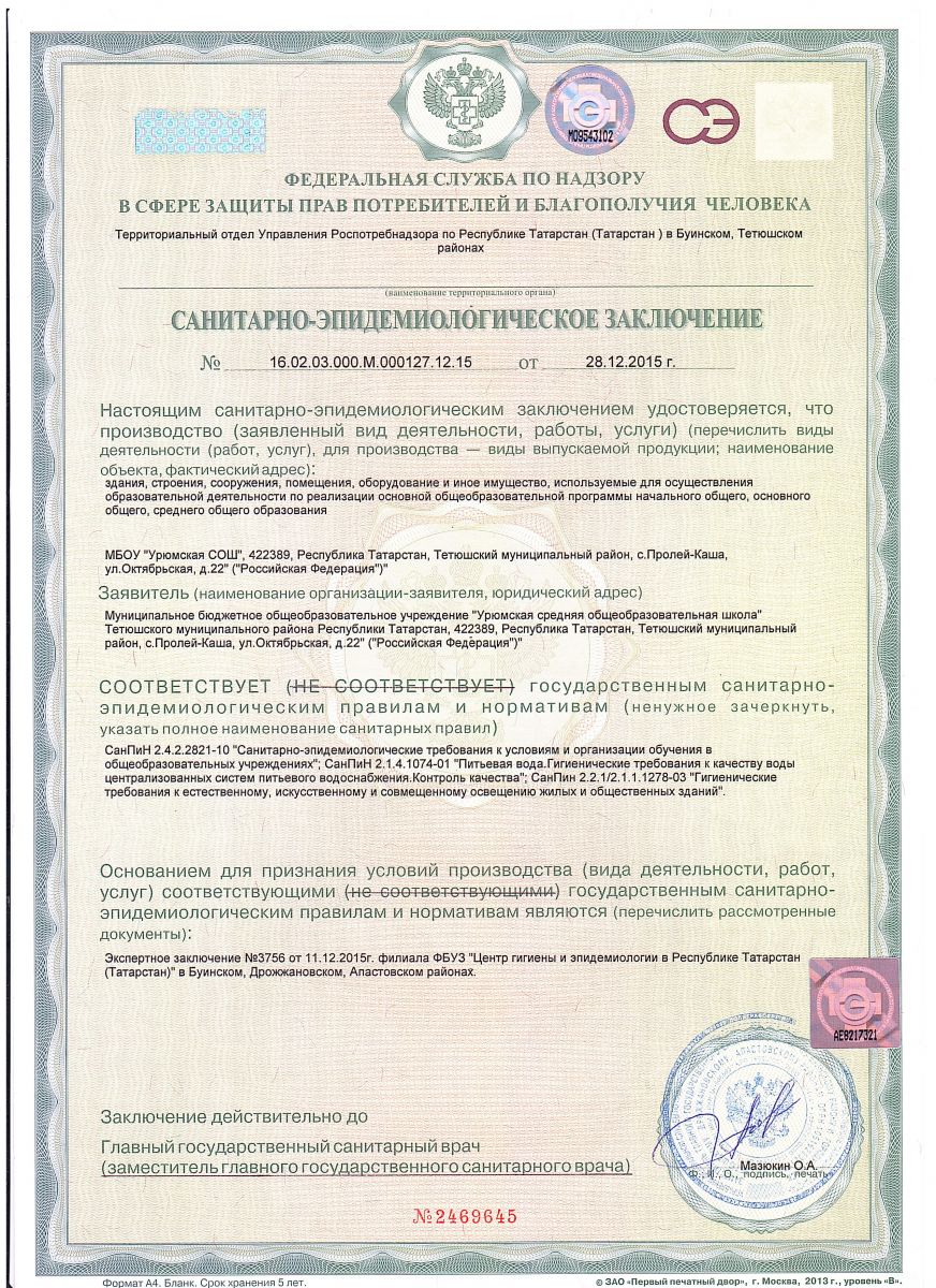 Муниципальное бюджетное общеобразовательное учреждение «Урюмская средняя общеобразовательная школа» Тетюшского муниципального района Республики Татарстан