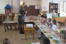 Воспитатель подготовительной группы Смирнова Е.В., показала открытое занятие с применением ИКТ для учителей начальных классов.