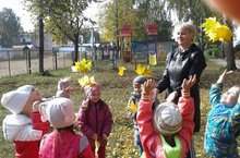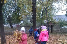 Золотая осень! Мы с детьми собираем осенние листья для букета и гербария. Но сначала заведём хоровод и устроим "салют" из осенних листьев. Как хорошо гулять по осеннему саду! Воспитанники старшей группы "Ягодка"
