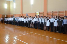 Смотр строя и песни "Силен в бою, статен в строю" среди учащихся 5-8 классов 19.02.2016