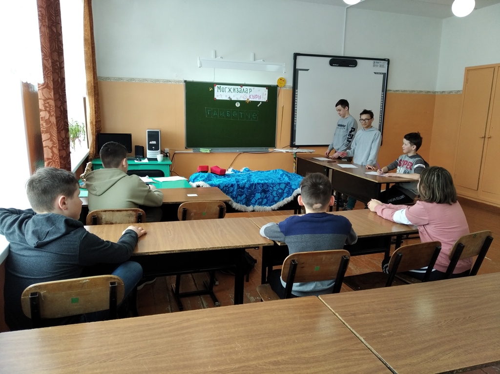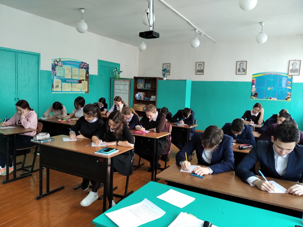 13. 7 нче апрельдә 8,9,11 нче сыйныф укучылары “Татарча диктант” акциясендә катнашты. Оештыручы: Якупова Л.Х. (Фото)