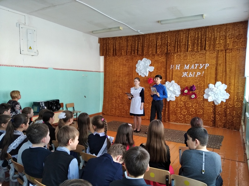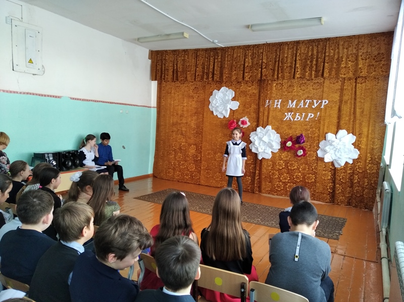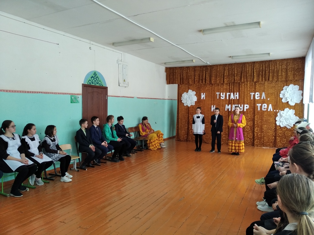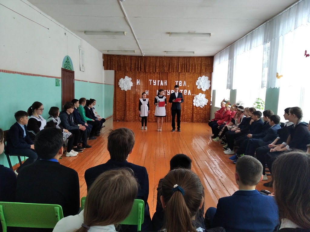 6. 19 нчы февраль көнне 5-11 нче сыйныф укучылары катнашында Халыкара Туган тел көненә багышланган әдәби-музыкаль кичә үтте. Һәр сыйныф үзенчәлекле чыгыш әзерләгән иде. Укучылар татар һәм рус телләрендә шигырьләр сөйләделәр, инглиз телендә җырладылар, татар һәм башкорт халык биюләрен башкардылар, халык уеннарын уйнадылар. Бәйрәм ахырында  бергәләп “Туган тел”не җырладылар. Оештыручылар Гимазиева З.А., Якупова Л.Х. (Фото1), (Фото2), (Фото3), (Фото4)