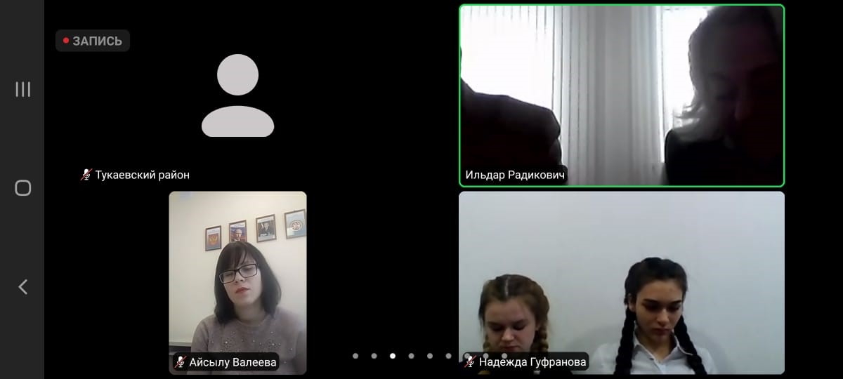Опубликовано: 28.01.202128 января 2021 г. в формате ZOOM был проведен республиканский семинар для классных руководителей, педагогов-организаторов, педагогов дополнительного образования и коллективов детских органов ученического самоуправления на тему : «Система организации деятельности детских органов ученического самоуправления» с участие педагогов и учащихся Управление образования Тукаевского муниципального района, Управление образования г.Набережные Челны, Управление образования г. Мензелинска .