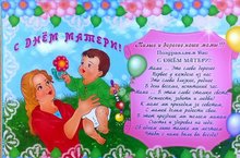 «... Мы любим сестру, и жену, и отца, но в муках мы мать вспоминаем...» Эти точные строчки лишний раз доказывают, что жизнь каждого из нас начинается на руках матери, которая становится самым близким и родным человеком. Традиция праздника берет начало из мистерий древнего Рима, где почитали Великую Марию — богиню, мать богов. Каждая страна имеет свою дату празднования. По Указу Б. Н. Ельцина Президента РФ в 1998 году в России днем матери считается последнее ноябрьское воскресенье. Этот праздник необходим, чтобы показать значимость, истинное предназначение женщины. Они хранят уют и тепло в доме, заботятся о своем чаде, нося его под сердцем, поддерживают, оберегают на протяжении всей жизни. В этот день принимают свои поздравления как уже состоявшиеся, так и готовившиеся к получению столь высокого звания, беременные дамы. Мамы и бабушки получают цветы, подарки, поздравления от всех близких и родных. Во многих семьях стало доброй традицией готовить праздничный стол, устраивать вечерние посиделки.