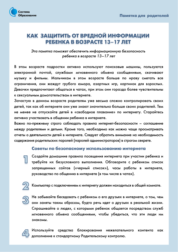 Как защитить от вредной информации ребенка в возрасте 13-17 лет (продолжение)