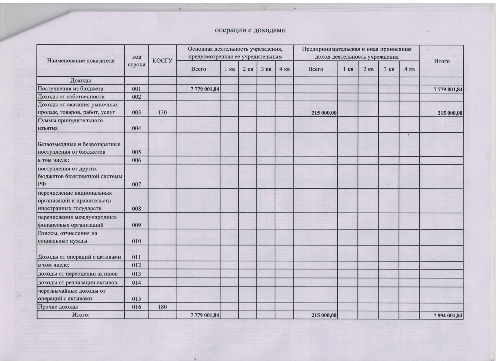 Отчет о кассовом поступлении и выбытии средств бюджетных учреждений 2016 г.