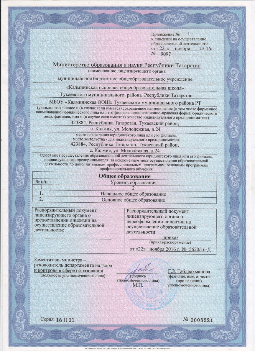 Муниципальное бюджетное общеобразовательное учреждение «Калмиинская основная общеобразовательная школа» Тукаевского муниципального района Республики Татарстан/ Татарстан Республикасы Тукай муниципаль районы "Калмия төп гомуми белем бирү мәктәбе" муниципаль бюджет гомуми белем бирү учреждениесе