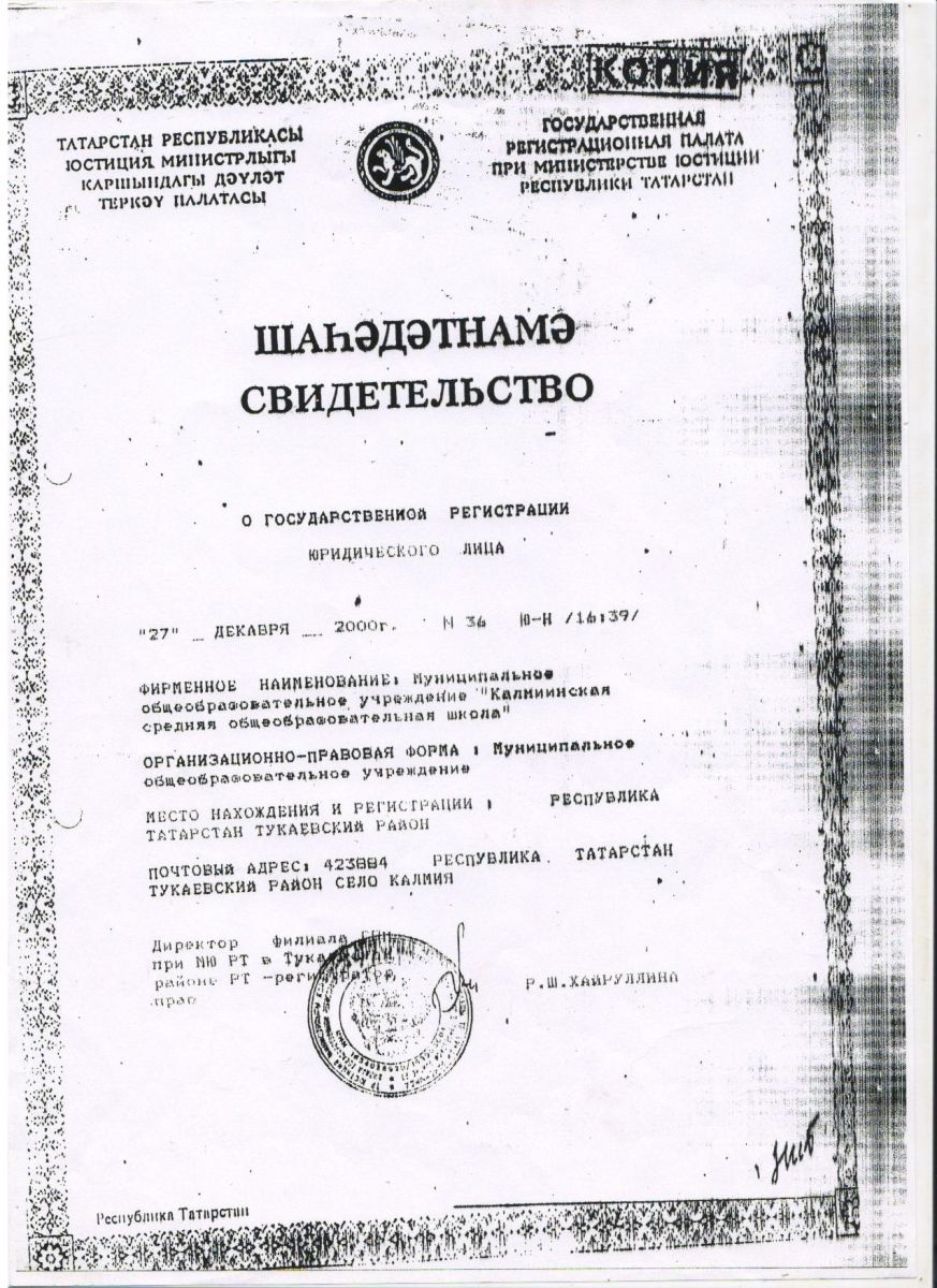 Муниципальное бюджетное общеобразовательное учреждение «Калмиинская основная общеобразовательная школа» Тукаевского муниципального района Республики Татарстан/ Татарстан Республикасы Тукай муниципаль районы "Калмия төп гомуми белем бирү мәктәбе" муниципаль бюджет гомуми белем бирү учреждениесе