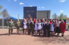 8 мая в 10.00 прошел митинг "ПОДВИГ. МУЖЕСТВО. СЛАВА РОССИИ", посвященный 77-ой годовщине Великой Победы у памятника"Никто не забыт, ничто не забыто", руководитель Тузеева Т.Е., Цандер Н.М.