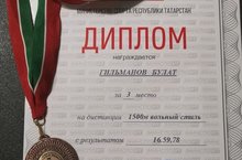 Ученик 9а класса Гильманов Булат занял 3 место в соревнованиях по плаванию в Первенстве Республики Татарстан.Поздравляем !!! Желаем только побед!