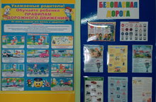 В детском саду дети активно изучают ПДД. Коллектив детского сада оформил познавательные стенды для детей и их родителей с нужными правилами.