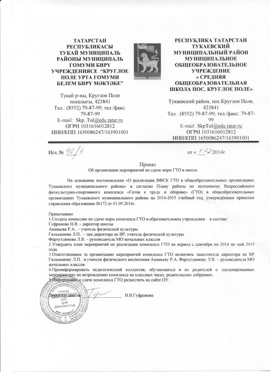 Муниципальное бюджетное общеобразовательное учреждение "Средняя общеобразовательная школа пос.Круглое Поле» Тукаевского муниципального района Республики Татарстан\Татарстан Республикасы Тукай муниципаль районы «Круглое Поле урта гомуми белем бирү мәктәбе» гомуми белем бирү муниципаль бюджет учреждениясе
