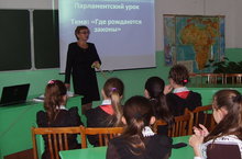 19 нчы ноябрдә мәктәптә “Парламент укулары үткәрелде”. Укучылар дәүләтебездә законнар ничек кабул ителүе турында презентация карагач, мавыктыргыч сорауларга җавап бирделәр.Җәмгыятебездә барган үзгәрешләр турында белемнәрен арттырдылар.