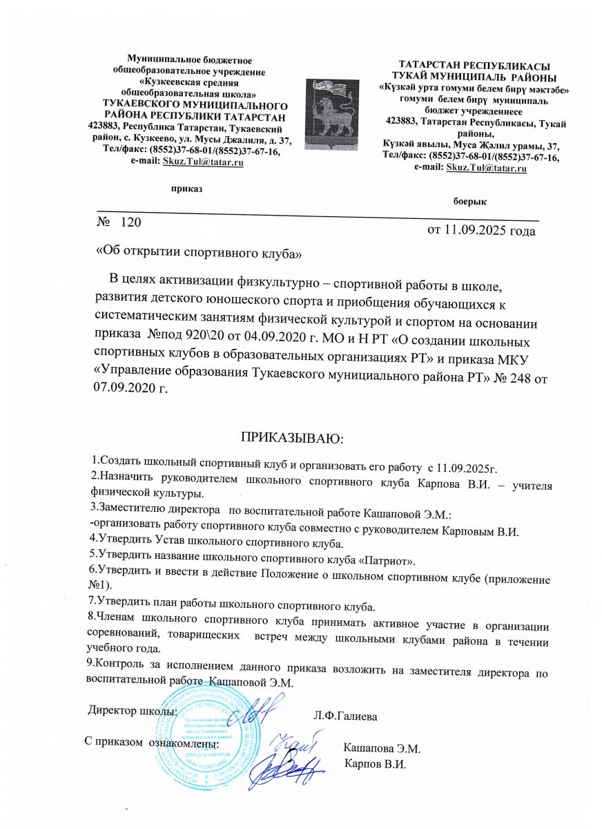 | Адрес: | 423883, РТ, Тукаевский район, с. Кузкеево, ул. Мусы Джалиля, д 37 |