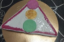 Испек вместе с мамой оригинальные кондитерские искусства пирожные-десерты с изображением дорожных предупреждающих знаков : «Ограничение максимальной скорости», «Пешеходный переход», «Дети», «Железнодорожный переезд без шлагбаума»Знак «Пешеходный переход»: