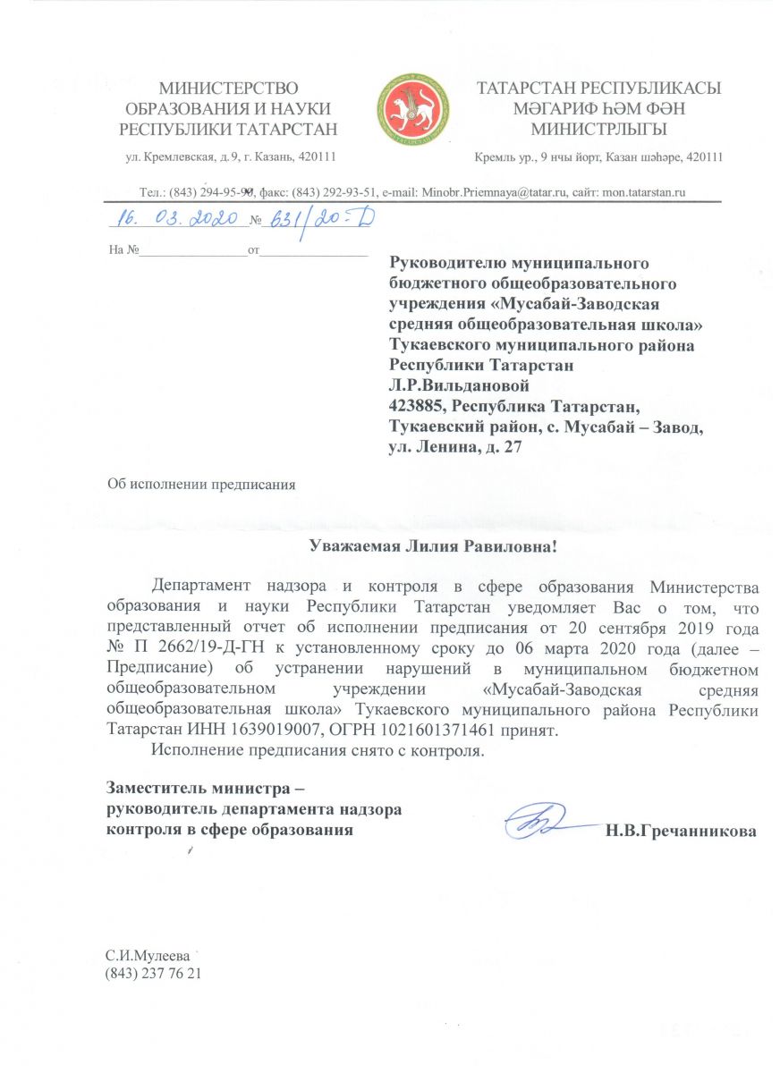 Муниципальное бюджетное общеобразовательное учреждение «Мусабай-Заводская средняя общеобразовательная школа» Тукаевского муниципального района Республики Татарстан/Татарстан Республикасы Тукай муниципаль районы «Мусабай-Завод урта гомуми белем мәктәбе» муниципаль бюджет гомуми белем бирү учреждениесе»
