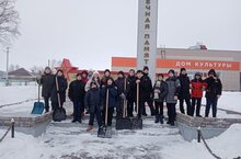 Обучающиеся 6 класса под руководством классного руководителя Прокопьевой Т.И. очистили памятник ветеранам ВОВ от снега/6 нчы сыйныф укучылары сыйныф җитәкчесе Прокопьева Т.И. җитәкчелегендә Бөек Ватан сугышы ветераннарына булган һәйкәлне кардан чистарттылар.