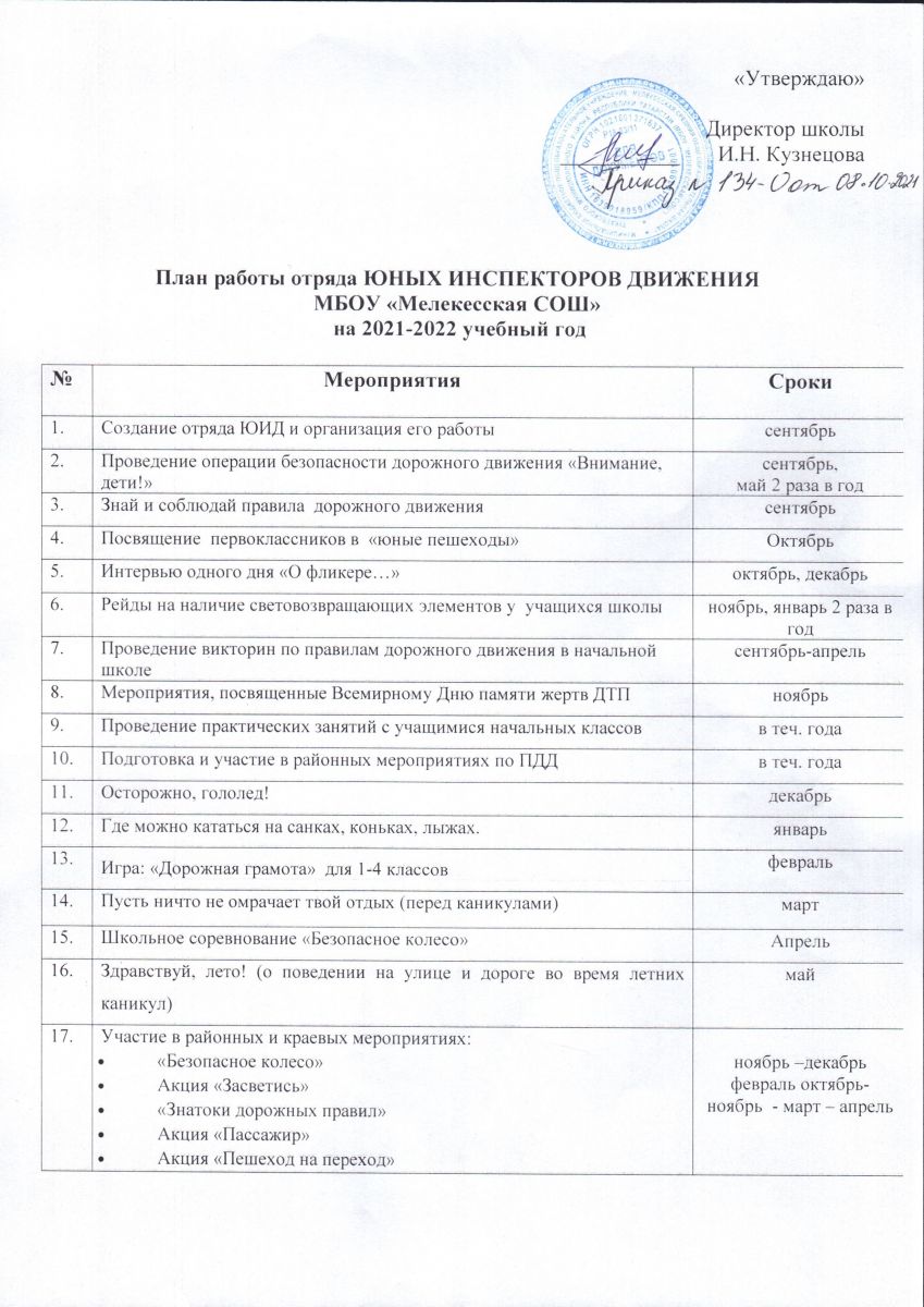 План работы отряда профилактики правонарушений несовершеннолетних "Орлы" на 2021-2022 уч.год
