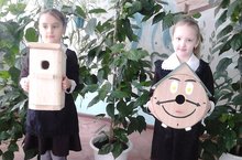 Мәктәптә кошлар көненә әзерлек эшләре башланып китте. 1 класс укучылары Сагманова Алсу белән Ганиева Сөмбел кошларга матур оялар алып килделәр.