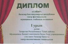 Сегодня в СДК с.Мелекес состоялось награждение победителей муниципального этапа Республиканского фестиваля детских и юношеских театров "Сайяр". Театральный коллектив воспитанников нашего детского сада под руководством педагогов Хайрутдиновой Г.Н. и Шайхетдиновой Л.К. награжден дипломом за 1 место! Поздравляем ребят и их наставников с победой, желаем новых творческих вершин!